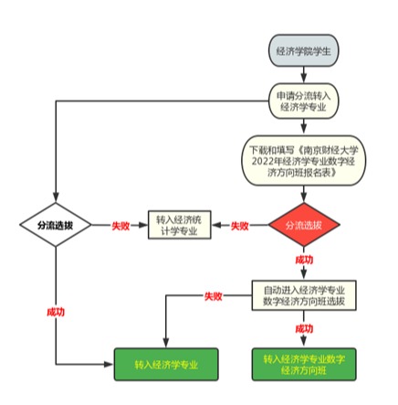 提交《南京财经大学大类专业分流志愿申请表》(将经济学专业作为第一志愿)和《南京财经大学2022年经济学专业数字经济方向班报名表》。以上两种表格交至凤凰娱乐城官方